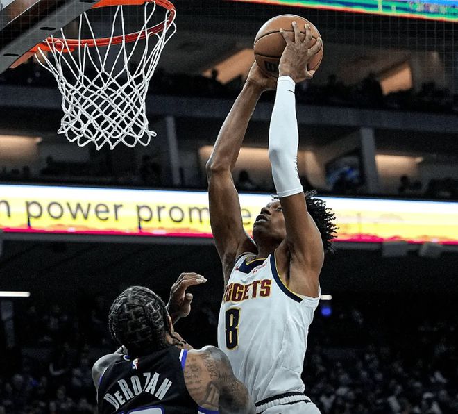 易邊再戰(zhàn),穆雷連線約基奇再打進(jìn),掘金領(lǐng)先國(guó)王近31分,打停國(guó)王。埃利斯中距離跳投終于命中,打破球隊(duì)近4分鐘得分荒。沃特森和埃利斯互飚三分,基根-穆雷接連反擊暴扣得手,國(guó)王追至24分分差。約基奇輕輕起跳打成2+1,皮克特接球三分還能命中,三節(jié)打完,掘金109-81領(lǐng)先國(guó)王28分。